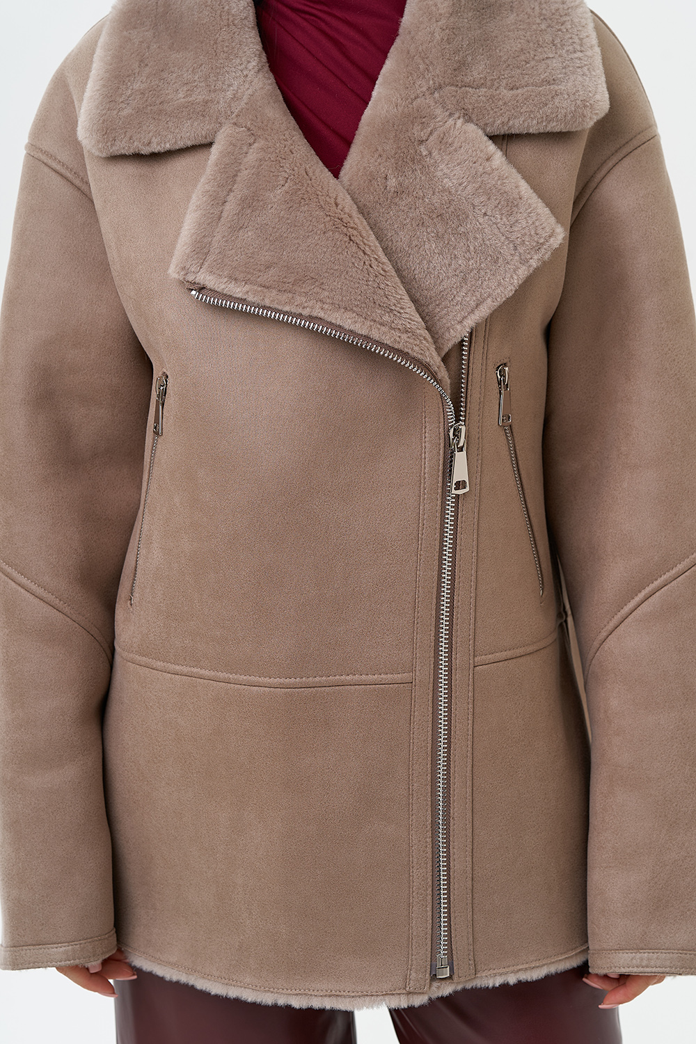 Фасон - прямой Длина изделия - 75 см Цвет - светло-коричневый Вид полотна - дубленая эко кожа Состав полотна - полиэстер 100% Вид застежки - молния Вид ворота - отложной Фасон рукава - спущенное плечо, длинный Фасон кармана - прорезной на молнии |
