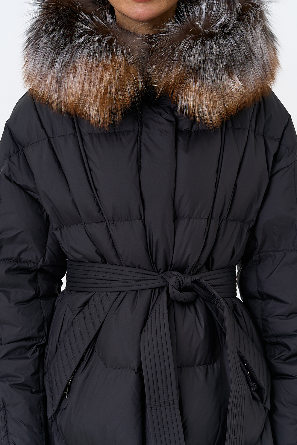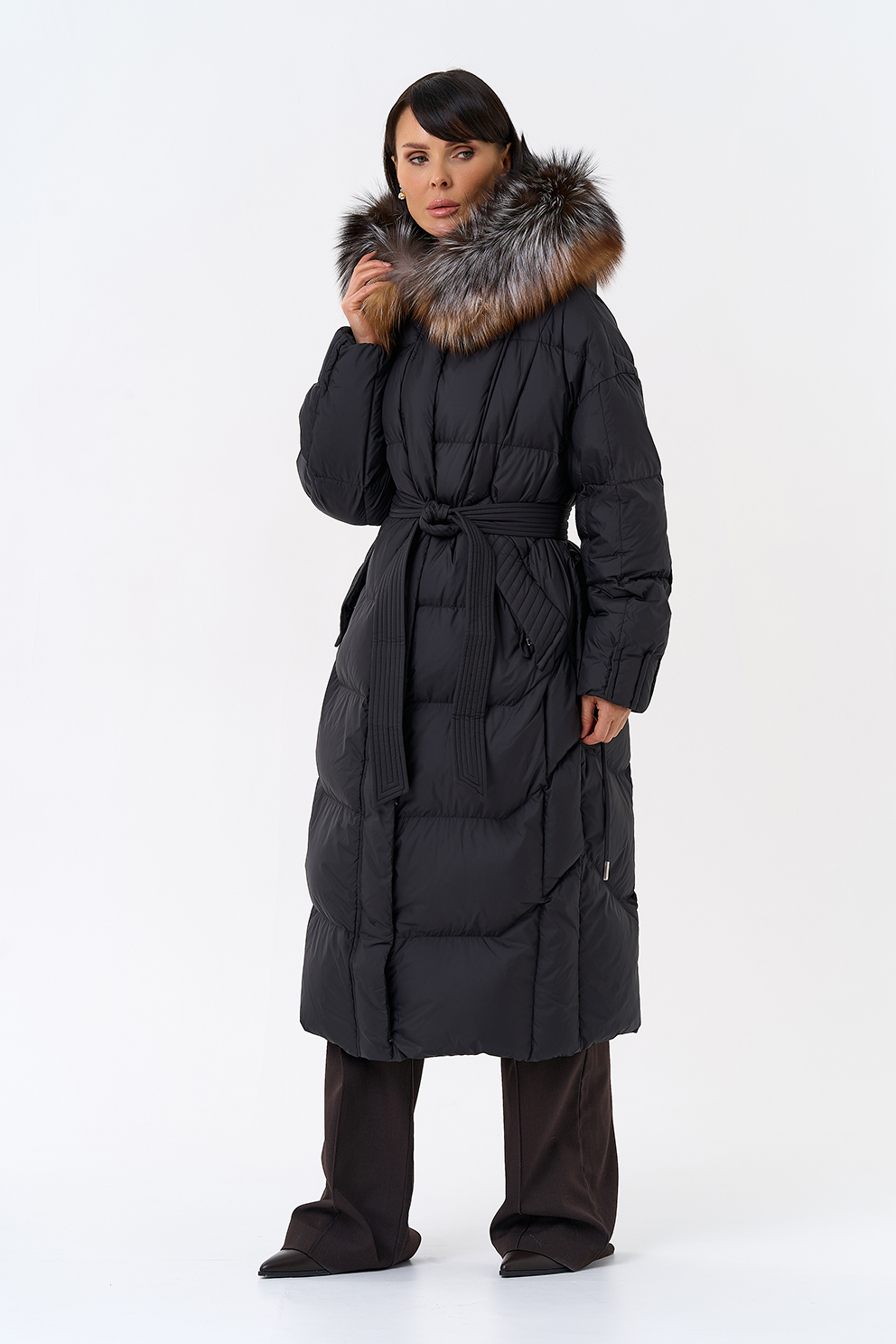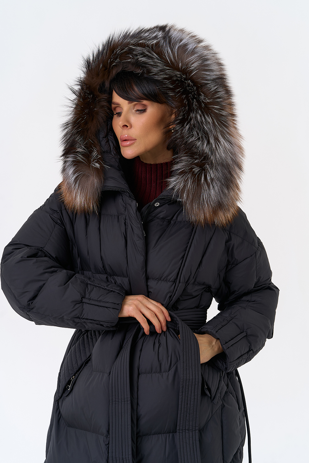 Крой воротника - капюшон, отделка блюфрост
