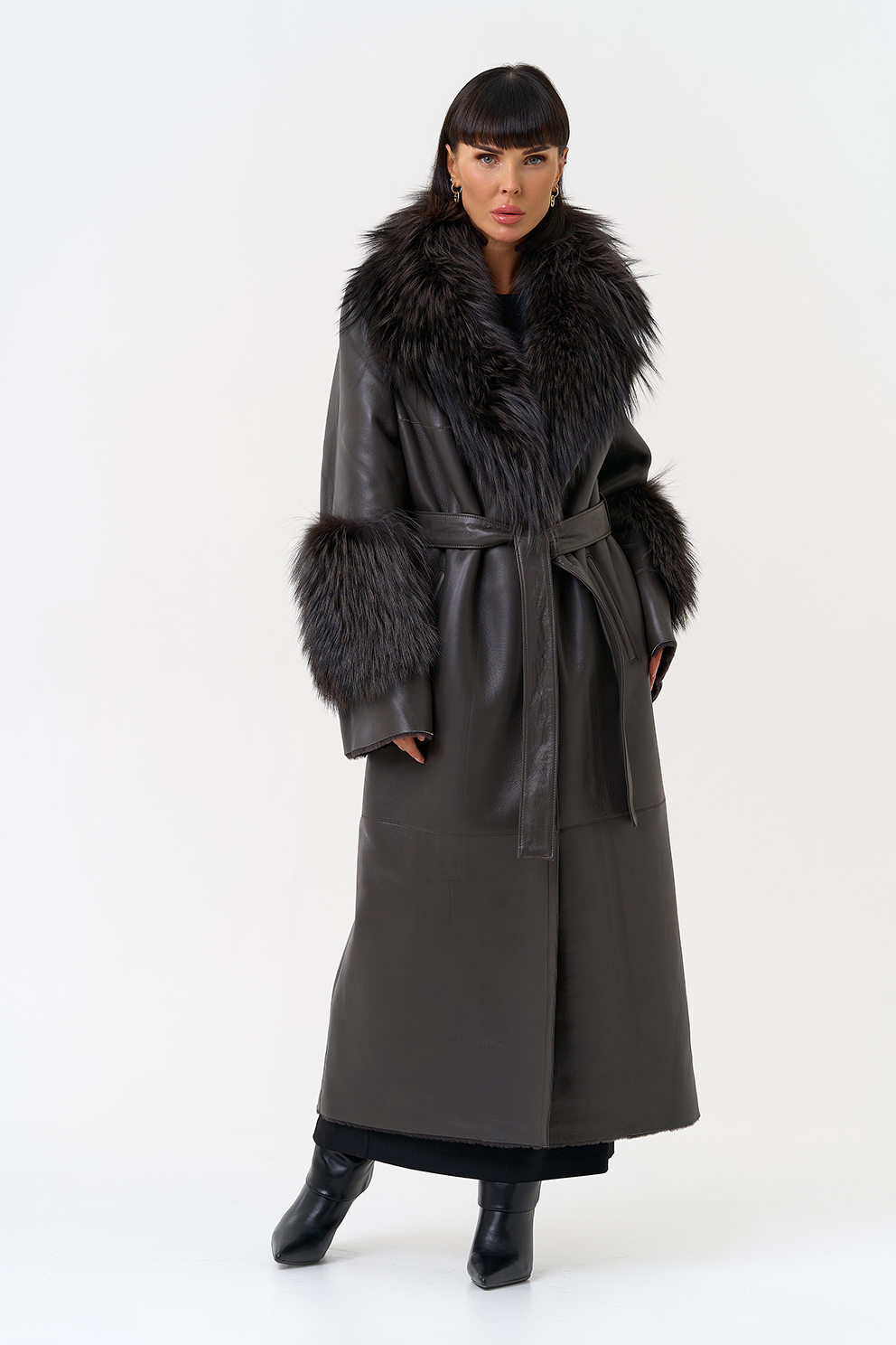 Отделка рукава - мех лисы, цвет серый
